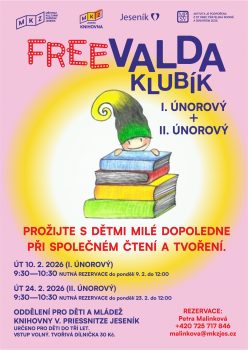 Děti i maminky si první listopadový FreeVALDA KLUBÍK velmi užily. Do konce roku nás čekají ještě dva termíny — 18. listopadu a 9. prosince. Na oba jste srdečně zváni, jen prosíme nezapomeňte na registraci (malinkova@mkzjes.cz).